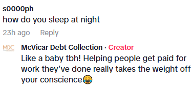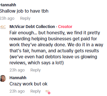 One commenter wrote, “People are struggling to pay their taxes, the cheek to go after these people.” This is a common mistake, but not true for McVicar Collections. Our main clients are small businesses and sole traders, hard-working people delivering services or goods who, unfortunately, haven’t been paid.