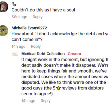 In recent social media conversations—particularly on platforms like TikTok—many myths swirl around what debt recovery agencies do. Comments on a recent McVicar Collections video captured common misunderstandings: people believe agencies mostly chase rent, bills, tax, or parking fines, or that debt collectors are immoral. Let's set the record straight.