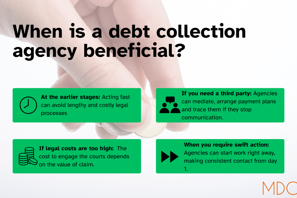 In short, a debt collection agency is often the first and most cost-effective step in the debt recovery process