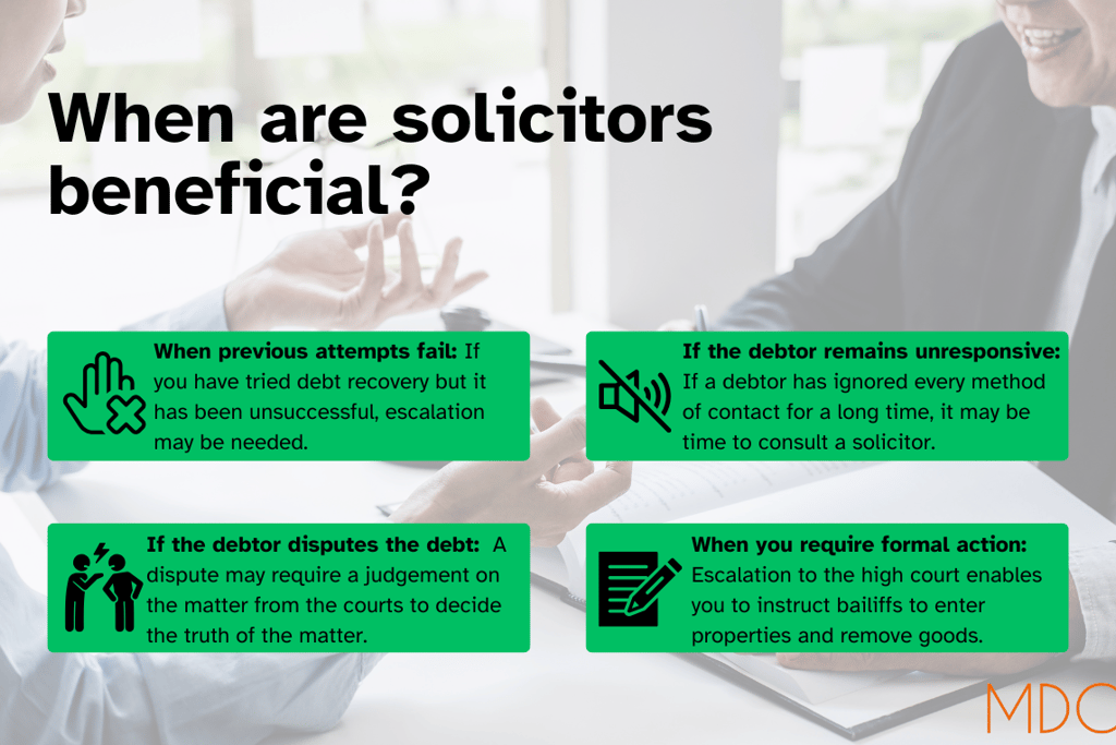 There are several advantages to using a debt recovery agency instead of going straight to a solicitor: